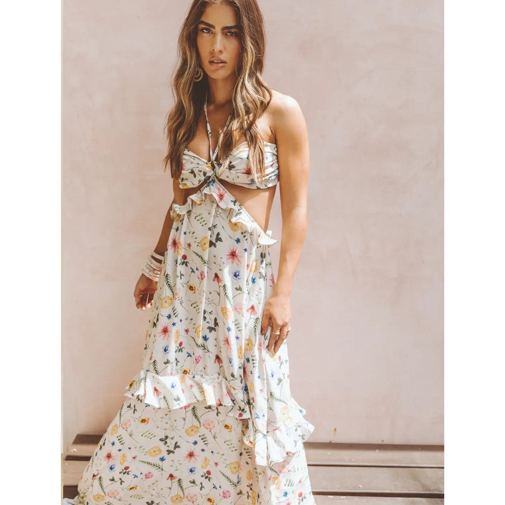 Victoria Maxi Dress | Floral Cut Out Ruffled Maxi Dress